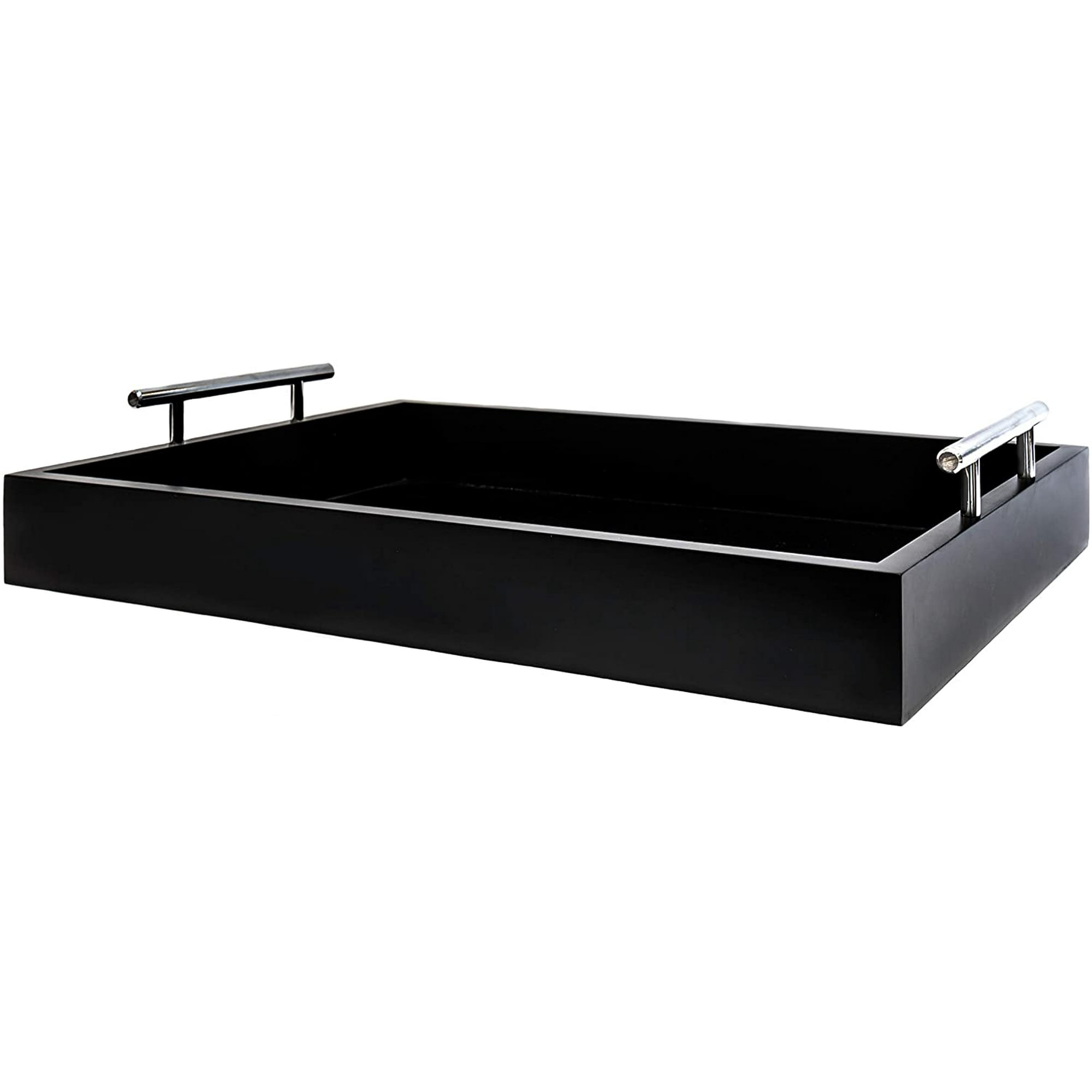 Coffee Table Tray Ottoman Tray Large Wooden Serving Tray With Silver Metal Handles Coffee Tray Breakfast Tray Or Table Tray In Rectangular Design Size 16 X 12 Inches Black Walmart Canada